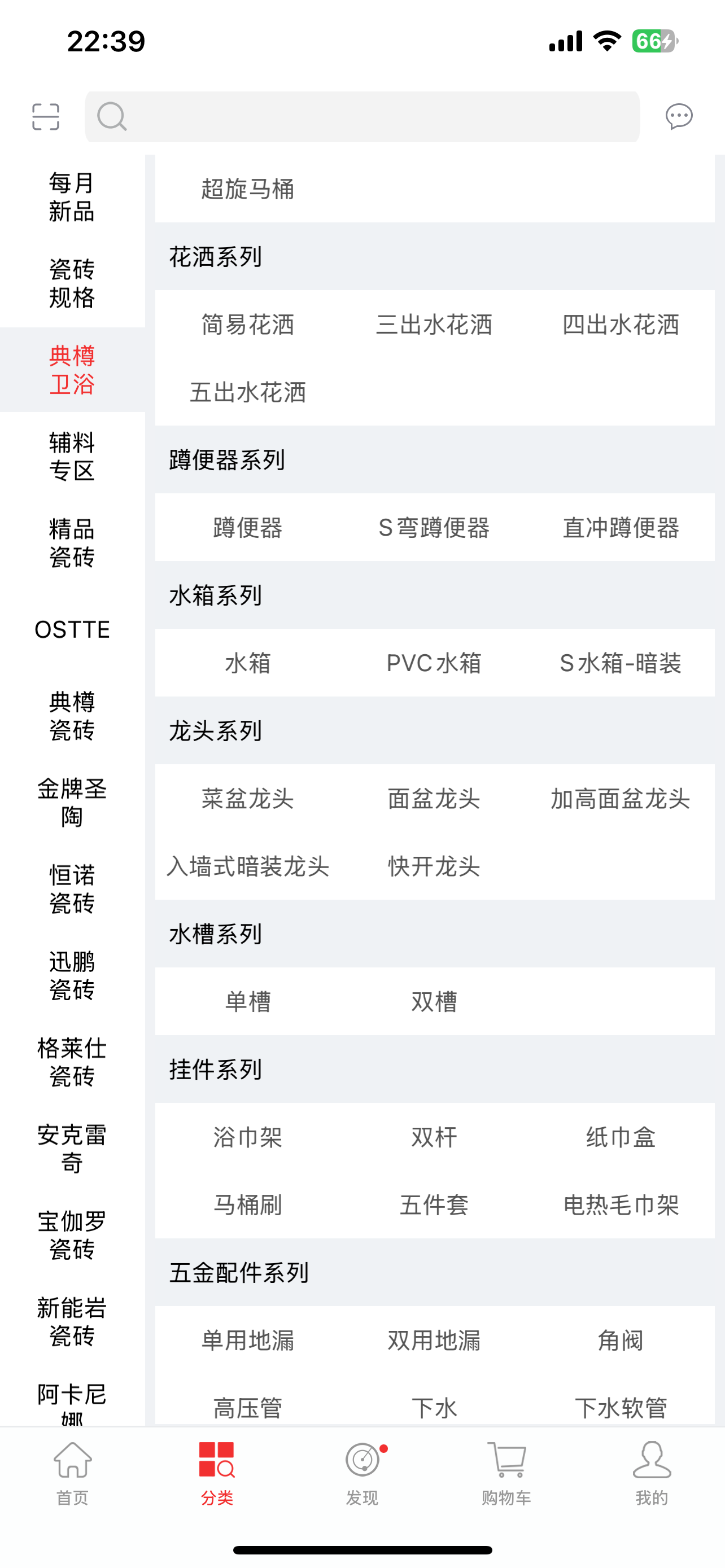涵盖商品有卫浴,瓷砖,辅材,开关等类